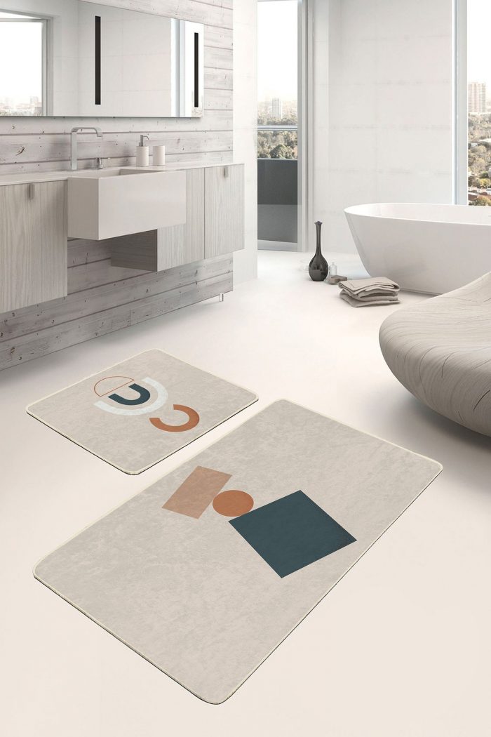 05 – Artistic Pattern Digital Printed (Double Set) Non-Slip Base Bath Mat & Kitchen Mat Set