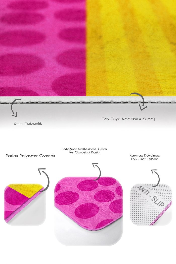 05 – Pink Yellow Pop-Art Pattern (Double Set) Non-Slip Base Bath Mat & Kitchen Mat Set