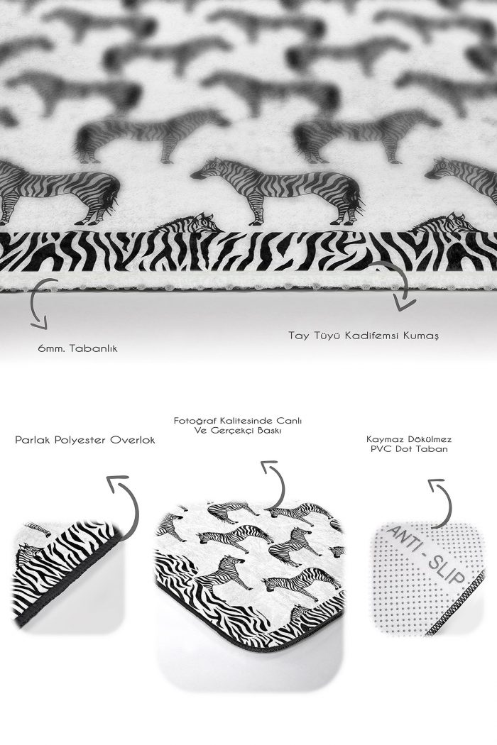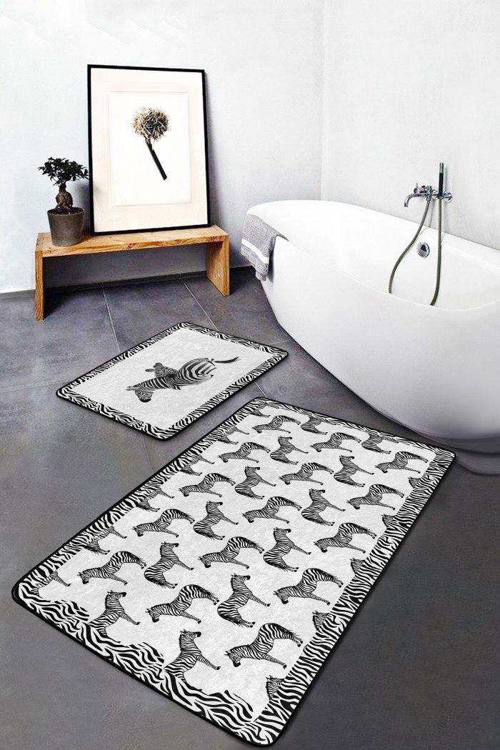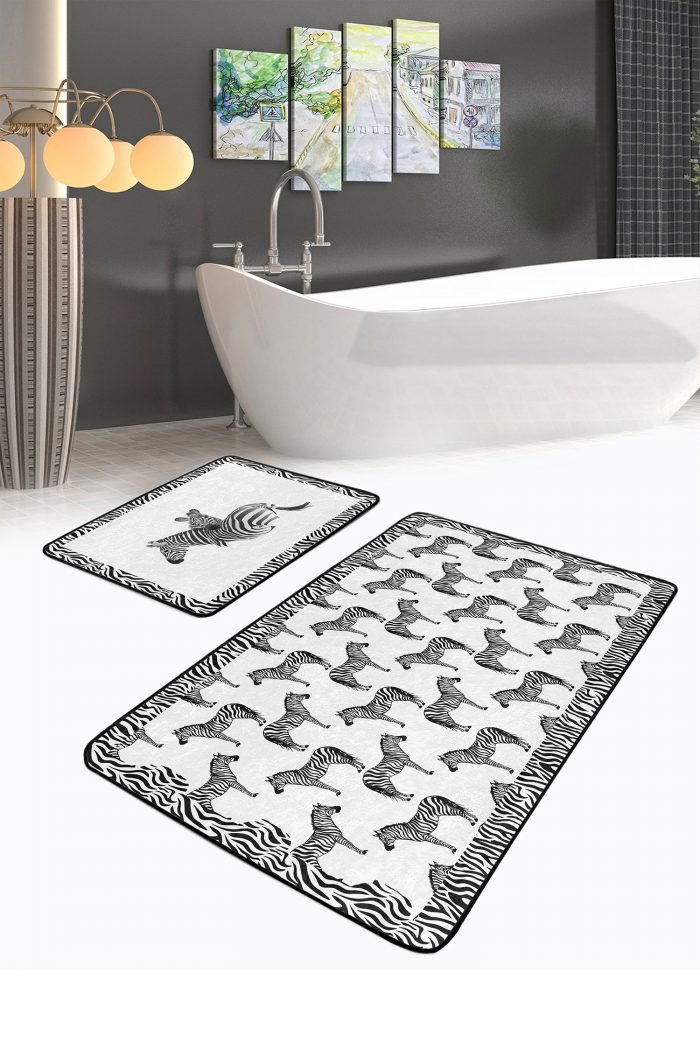 05 – Black and White Zebra Patterned (Double Set) Non-Slip Base Bath Mat & Kitchen Mat Set