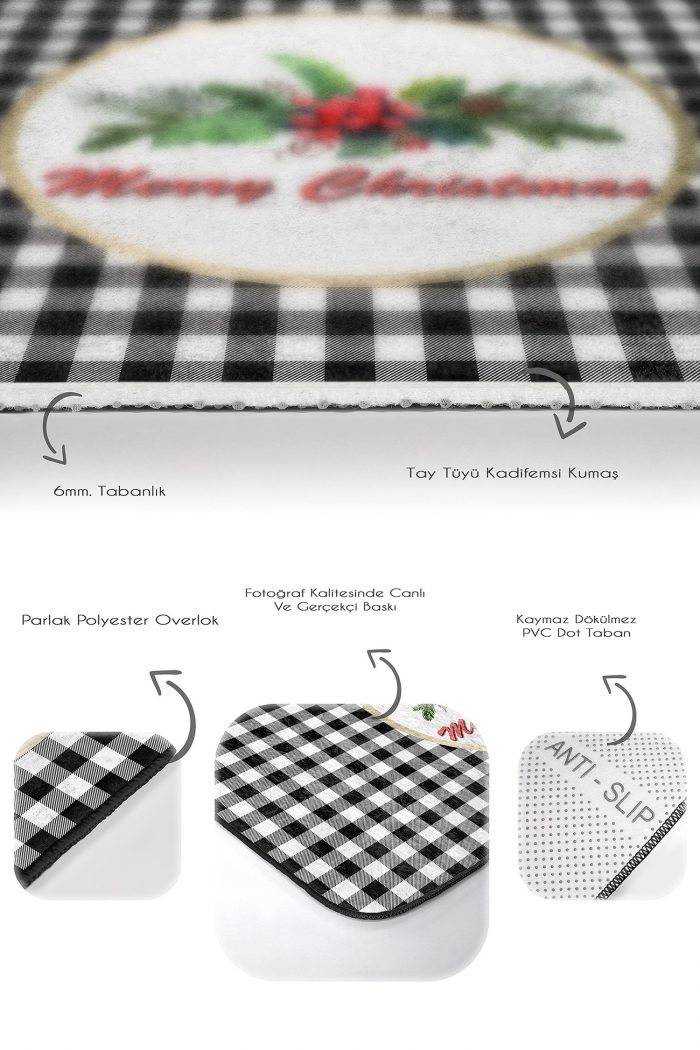 Be the first to review “05 – Black Plaid Merry Christmas Pattern (Double Set) Non-Slip Base Bath Mat & Kitchen Mat Set”