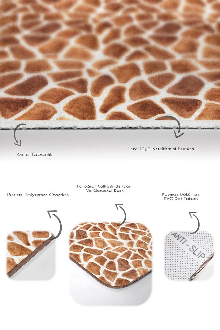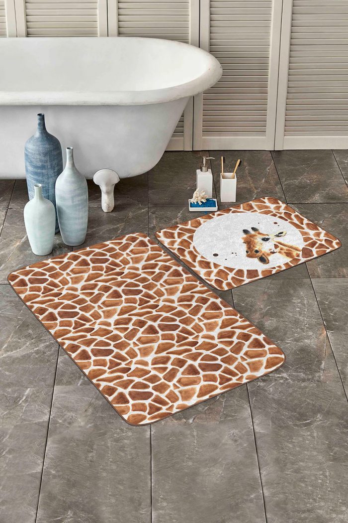05 – Brown Giraffe Patterned Digital Printed (Double Set) Non-Slip Base Bath Mat & Kitchen Mat Set