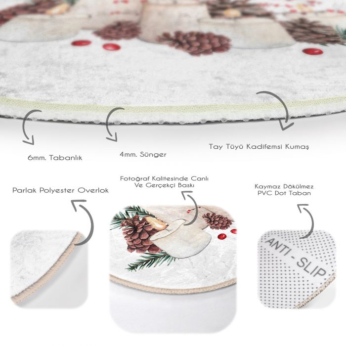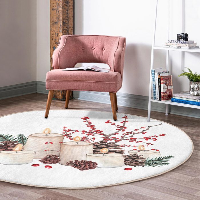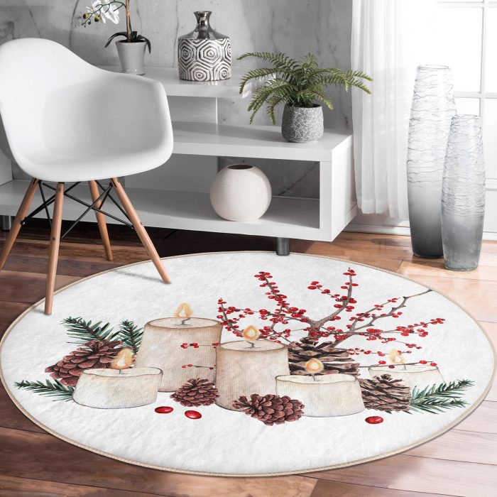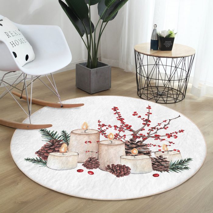 05 – Candle and Cone Design Christmas Theme Digital Printed Colorful Kitchen Washable Non-Slip Base Round Rugs