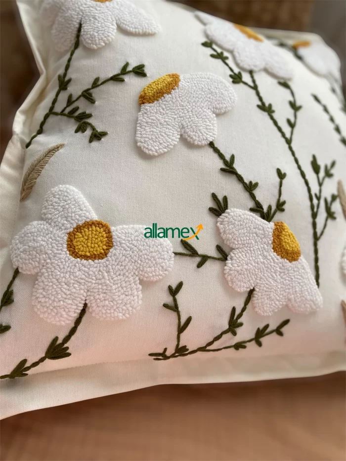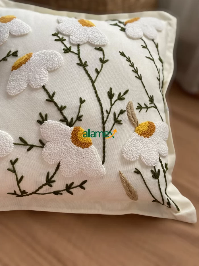 F4 – Handmade Punch Needle Daisy Pillow Cover, Handmade Cushion Cover, Home Decor, Sofa Pillowcase