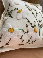 This handmade cushion cover is lovingly crafted using the punch embroidery technique on soft, natural linen fabric. Adorned with cheerful white daisies and delicate green stems, the design draws inspiration from the pure charm of a spring meadow. Each flower is carefully embroidered by hand, celebrating the uniqueness and warmth of artisanal craftsmanship. With its fresh tones and textured floral details, this piece brings a breath of nature into your home, combining elegance and a cozy, inviting feel.